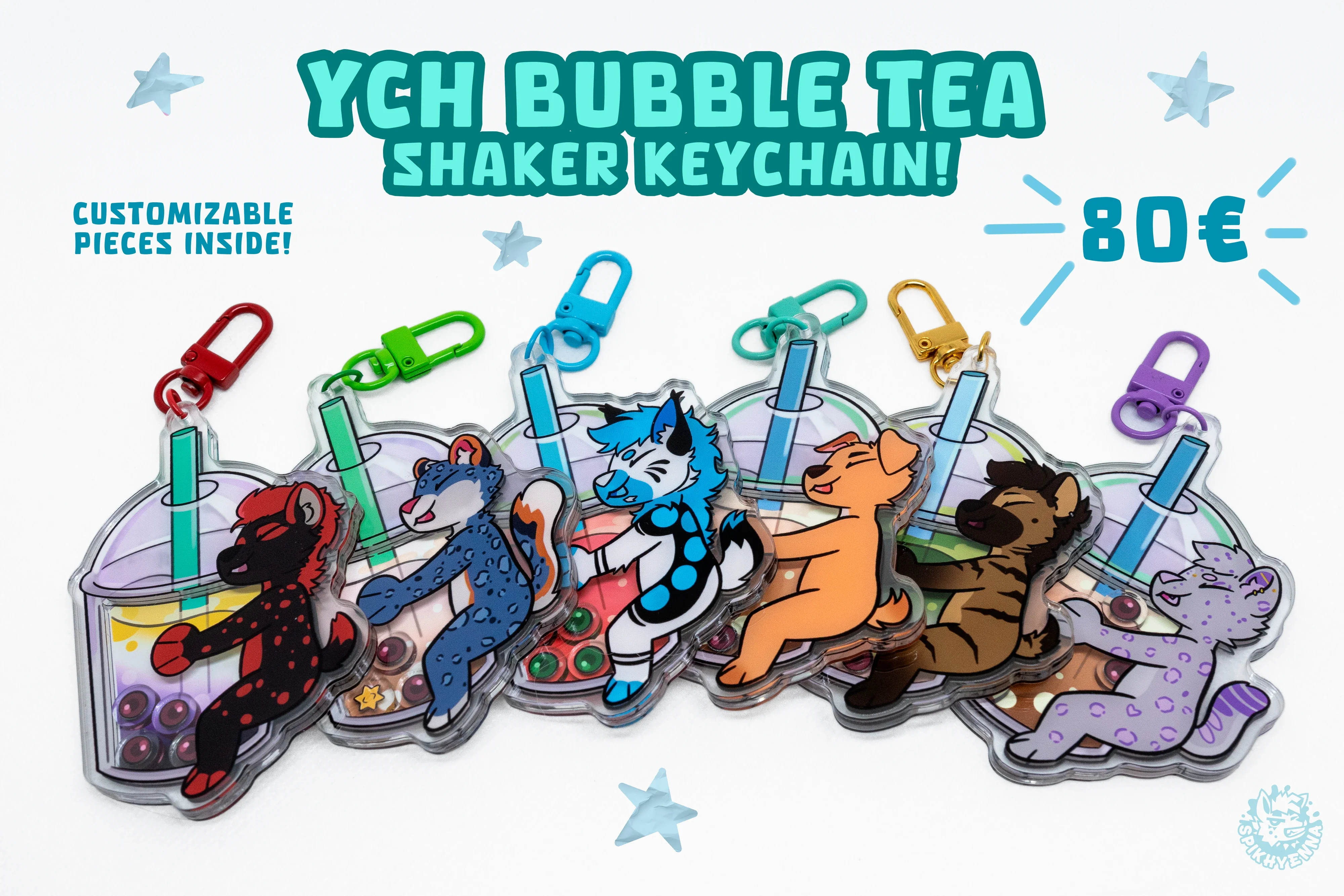Decorate your backpack or keys with a custom acrylic epoxy keychain of your chibi OC!